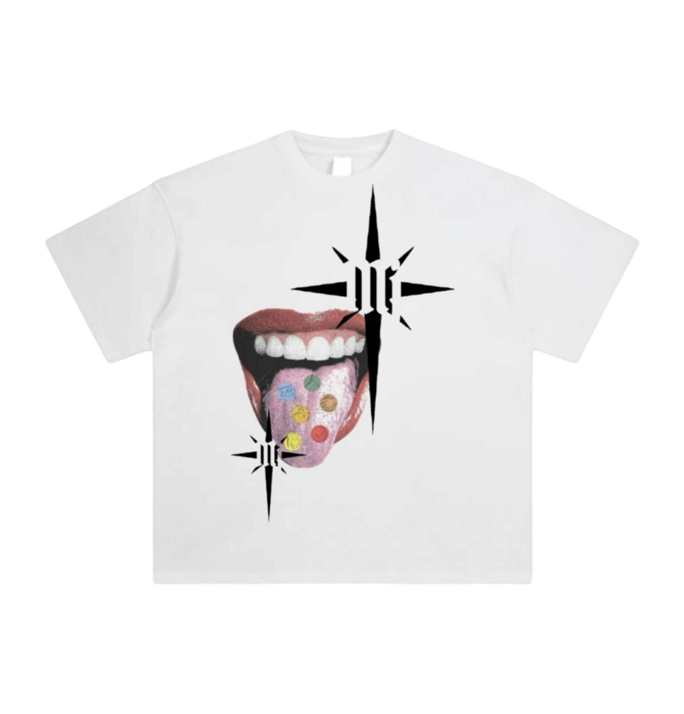 Белая oversize футболка премиального качества, выполненная из 100% хлопка плотностью 240 г/м². Мягкая, прочная и идеально держащая форму ткань обеспечивает комфорт и долговечность. На груди — эффектный арт-принт с глянцевыми красными губами и графическими элементами в стиле клубной эстетики, отсылающий к поп-арту, постерам рейвов и ночной жизни 90-х. Модель идеально вписывается в гардероб в стиле streetwear. Унисекс-крой позволяет носить футболку как мужчинам, так и девушкам.