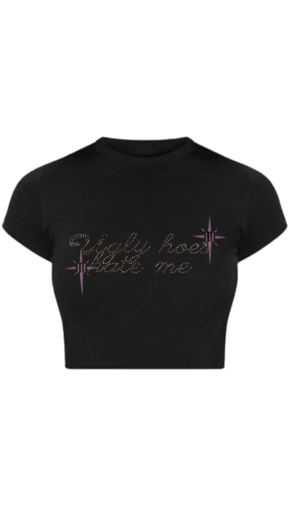 Женская футболка в стиле streetwear с дерзкой надписью "Ugly hoes hate me", выполненной из сияющих страз. Изготовлена из мягкого, дышащего хлопка, обеспечивающего комфорт при носке и долговечность. Обтягивающий крой подчеркивает фигуру, а эластичная ткань идеально садится по силуэту. Яркий и смелый дизайн делает эту фишку акцентной деталью любого образа, будь то повседневная прогулка, вечеринка или фотосессия. Отлично сочетается с джинсами, мини-юбками и кроссовками, создавая ультрамодный образ.